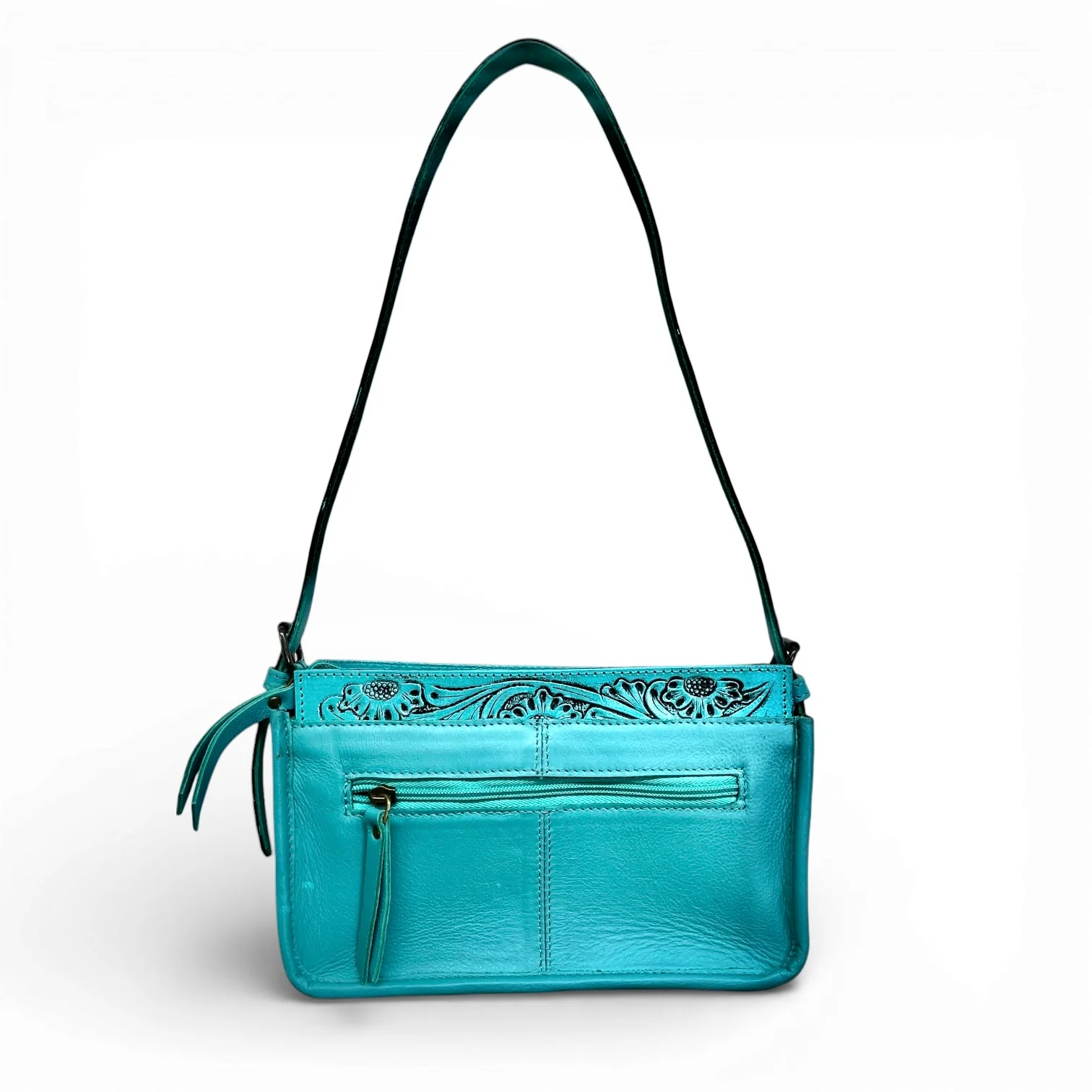 Turquoise tooled leather & cowhide shoulder bag